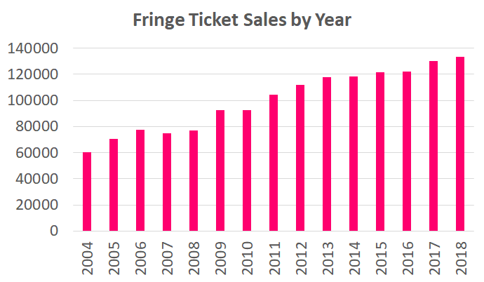 Here’s what the growth in Fringe ticket sales looks like over the last 15 years: