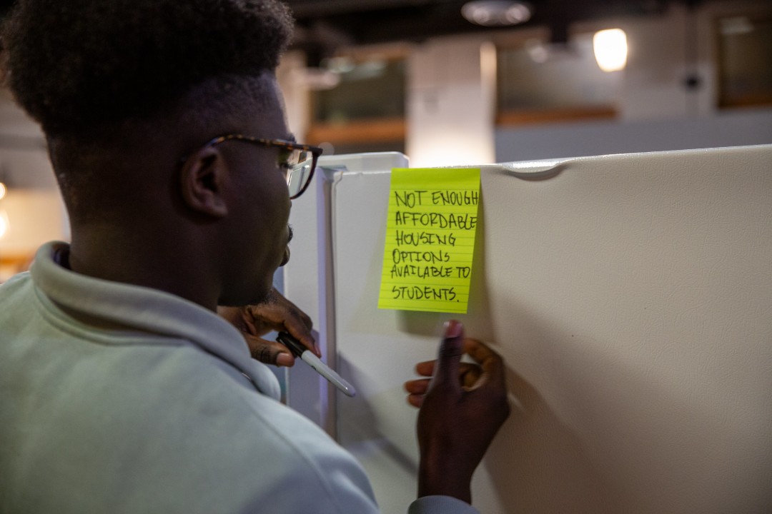 Taproot lastly asked people to locate themselves within the city’s housing ecosystem, how they felt about that position, and anything that made it complex. We put their written answers up on the wall as a bit of a mind map.