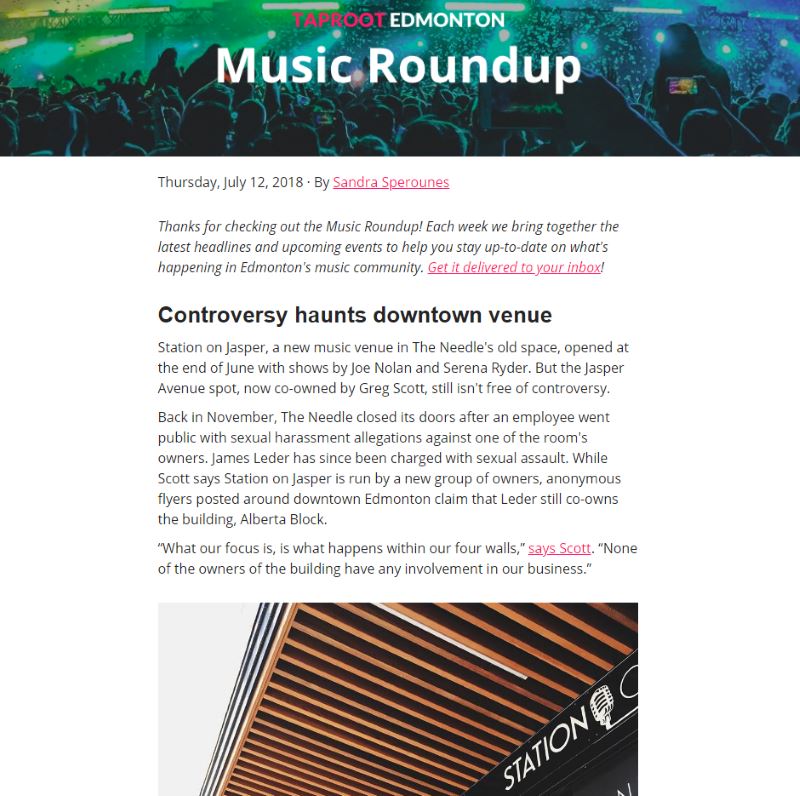 We are still committed to helping Edmontonians better understand the local music scene, and we encourage musicians, venues, promoters, and everyone else in the industry to continue sending news and other updates to us at hello@taprootedmonton.ca.